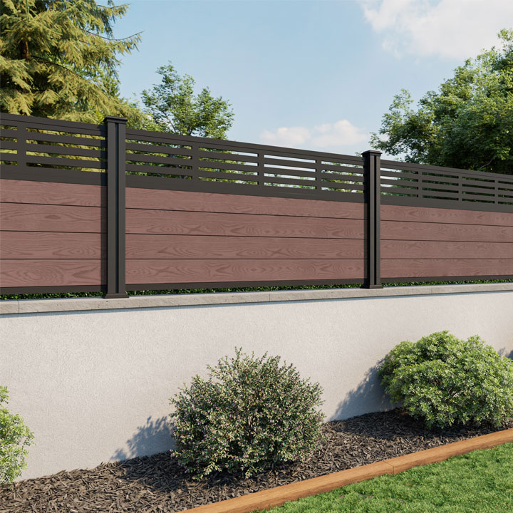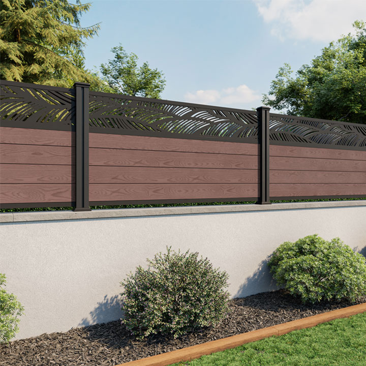 3ft 3D Golden Oak Composite Fence Panel with Decorative Screen