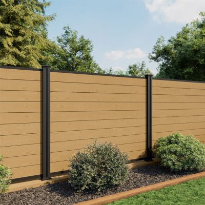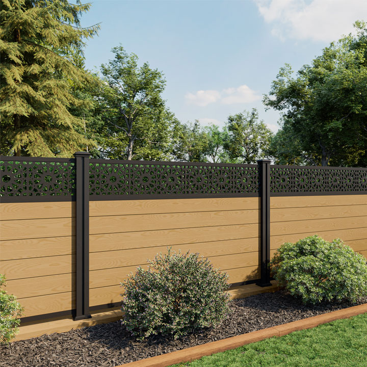 4ft 3D Light Oak Composite Fence Panel with Decorative Screen
