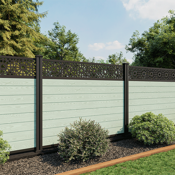 5ft 3D Sage Green Composite Fence Panel with Decorative Screen
