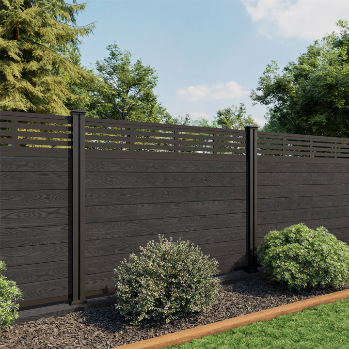 5ft 3D Black Ash Composite Fence Panel with Decorative Screen