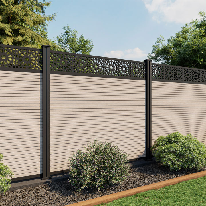 6ft Slatted Composite Fence Panel with Decorative Screen – Grey